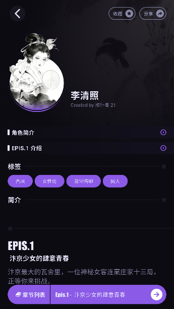 3、在角色页面,你可以阅读其性格设定、背景故事、语音风格等信息,帮助你更快融入剧情,建立情感连接。