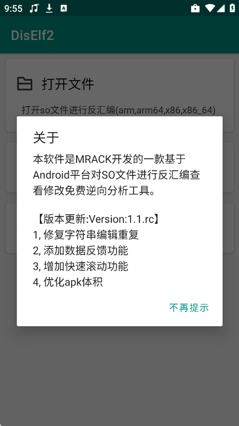 DisElf2是一款专为安卓开发者与逆向爱好者打造的免费手机版 SO 反编译工具。本站提供的是 DisElf2 脱壳内置版——无需 Root 权限,无需额外安装脱壳插件,全面兼容 ARM、ARM64、x86、x86_64 等主流手机处理器架构,真正实现开箱即用。