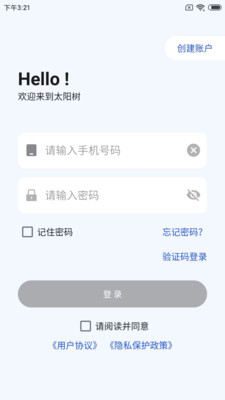 3、新用户点击右上角的创建账号输入手机号即可登录