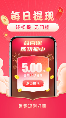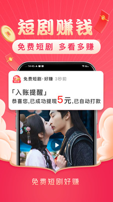 免费短剧好赚是一款集热门短剧观看与任务赚钱于一体的娱乐互动平台。无需会员、不设付费墙,海量正版短剧免费畅看——甜宠、战神、逆袭、悬疑、宫斗、都市爽剧……每日更新上千集,单集1–3分钟,节奏快、反转多,专为碎片时间打造沉浸式追剧体验。