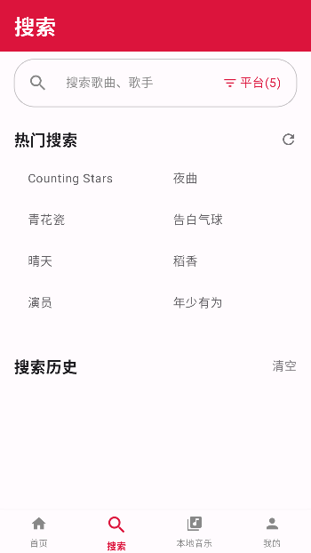1、在搜索页面输入你想要听得歌名