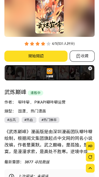 3、在漫画详情页,点击【开始阅读】按钮,即可进入全彩高清阅读界面。