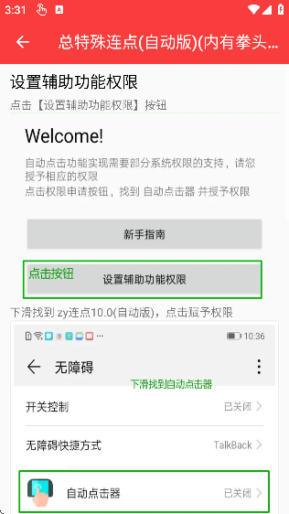 总特殊连点器(自动版)(内有弓)是一款面向安卓用户的轻量级自动化操作辅助工具,旨在帮助用户简化重复性屏幕交互任务。通过模拟点击、滑动等基础操作,可应用于日常签到、页面浏览、数据录入等非游戏类、合规场景,提升操作效率。