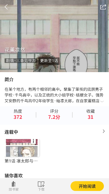 2、点击漫画封面进入作品介绍页面,在页面左下角找到并点击【加入书架】按钮,即可成功收藏。
