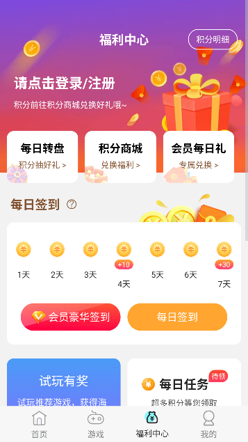 1、点击首页下方的游戏按钮