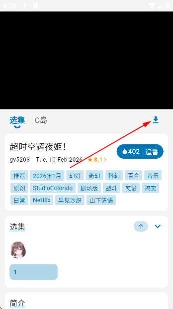 2、然后进入播放页面点击缓存按钮就可以下载了。