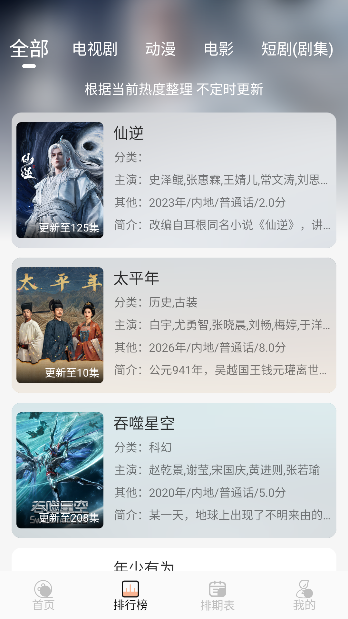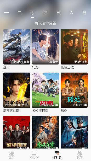 3、切换至【排期表】界面,你能清晰看到每日上线的新剧、新番及更新计划。热门剧集的播出时间一目了然,再也不用担心错过大结局或最新一集!