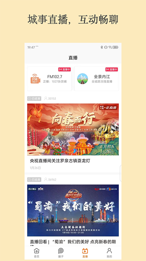大内江App内汇聚海量本地原创视频内容,涵盖市中区、东兴区、隆昌市、资中县、威远县等内江全域“三县三区”的广播电视资源。所有频道信号稳定、播放流畅,让您无论身在内江何处,都能同步接收权威、及时、贴近生活的本地视听服务。无论您是关注家乡发展的游子,还是扎根热土的市民,打开“大内江”,就能听见内江声音、看见内江变化、感受内江温度。