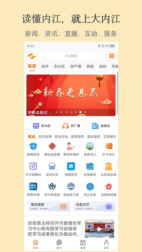 大内江是由内江广播电视台官方倾力打造的新媒体综合服务平台,集新闻资讯、广播电视直播、节目回看、本地生活服务等多功能于一体,真正实现“一端在手,尽知内江事”。下载大内江App,与城市同频,与家乡同行!