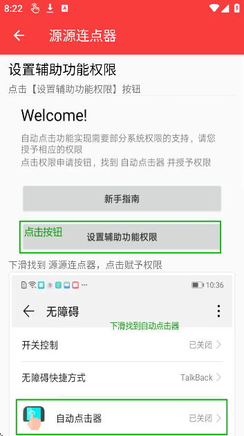 2、将所需权限(如无障碍服务等)全部开启,以确保功能正常运行;