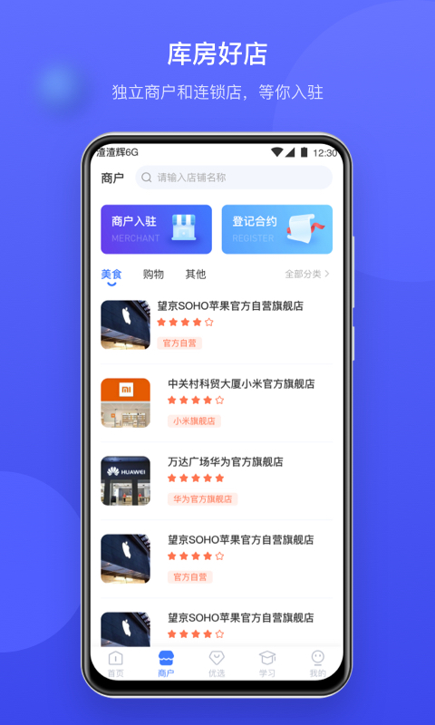 2、点击商户入驻按钮