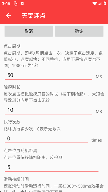 3、返回主界面,根据实际需求设置点击位置、频率、执行次数等参数。