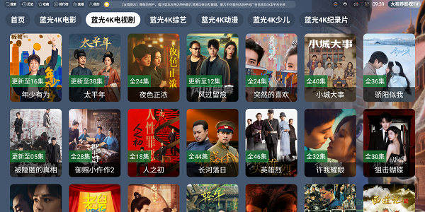 大视界影视TV采用先进的流媒体解码与智能线路调度技术,支持1080P甚至4K超高清播放,换台无卡顿、加载无等待,真正实现“点开即看,秒速播放”。即使在网络波动环境下,也能自动切换最优线路,保障观影连续性。界面设计简洁清爽,无弹窗、无广告干扰,老人小孩都能轻松上手。左侧快捷菜单支持一键换台、快速搜索、历史回看等功能,大屏操控更高效。