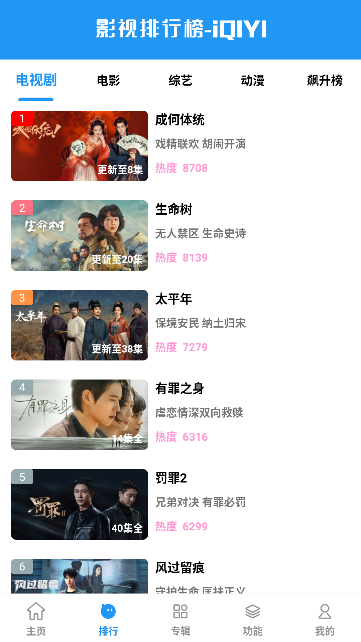 2、点击排行按钮可以看到近期热门的好剧