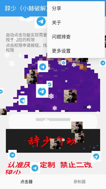 4、娱乐互动:自动抢红包、助力点击、活动打卡等。