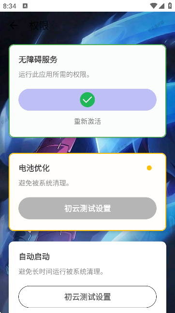 2、按照屏幕提示,依次开启所需系统权限(如无障碍服务、悬浮窗权限等);