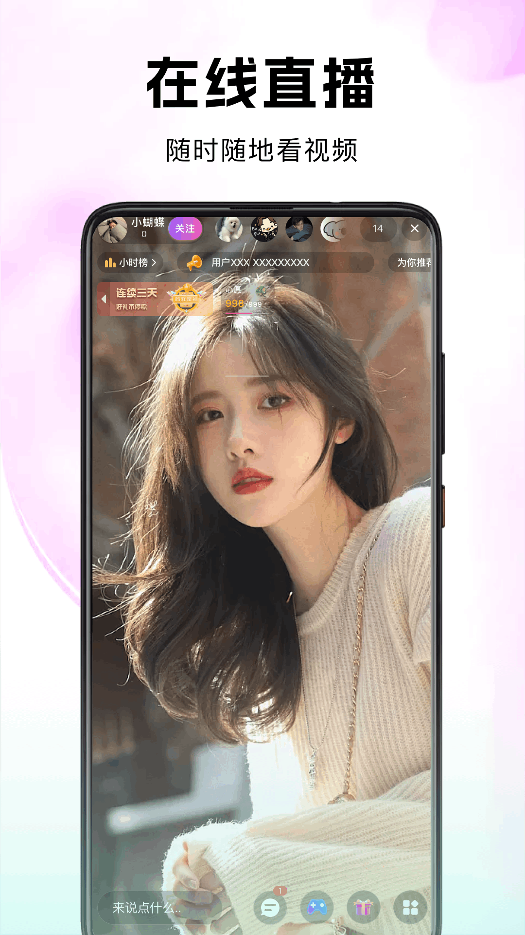 【互动多元,拒绝单向观看】支持线上派对、多人连麦、趣味PK等交互模式。用户不再是旁观者,而是通过深度参与游戏与连麦,与主播建立强情感羁绊,体验属于自己的“小时代”。