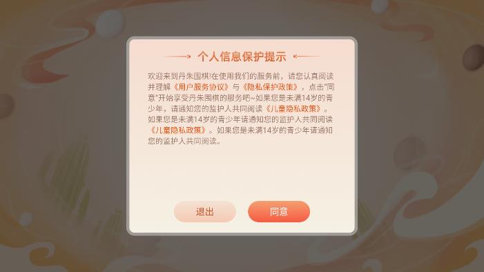 下载安装并打开丹朱围棋app,在个人信息保护提示界面点击同意;