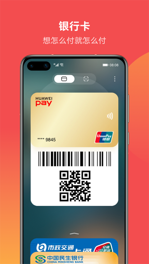 1、付款码:绑定银行卡,双击电源键即可快速支付(Huawei Pay);