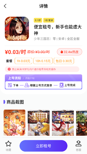 3、点击立即租号按钮即可