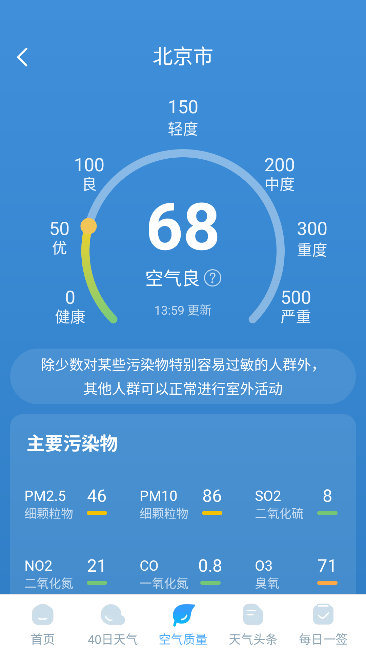 3、点击空气质量即可看到主要污染物