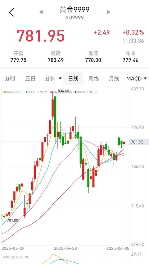 2、实时更新伦敦金、COMEX黄金、上海黄金交易所(Au99.99) 等权威报价,支持K线图、多周期走势分析,助力投资决策。