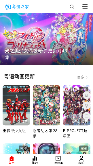 粤漫之家是一款专注于粤语配音动漫的高品质追番平台,所有动画内容均采用地道粤语发音,带你沉浸式感受原汁原味的港式动漫魅力。无论你是怀念儿时经典的“老广”观众,还是热爱粤语文化的年轻动漫迷,这里都能满足你的怀旧情怀与追番热情。