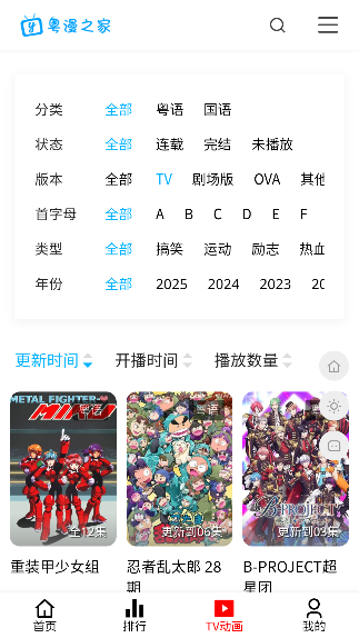 2、点击到tv动画页面可以看到不同的类型