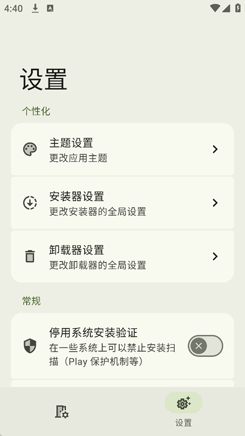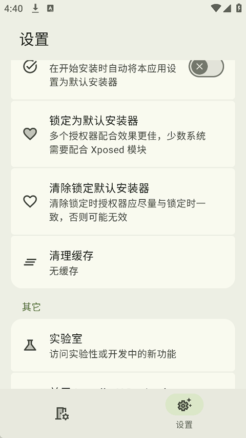 2、为实现点击APK文件时自动调用InstallerX Revived而非系统安装器,请进入应用内设置:打开InstallerX Revived→设置→安装器设置;启用“接管APK安装”或类似选项。