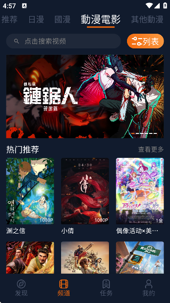 1、首先点击搜索栏找到你想看的动漫。