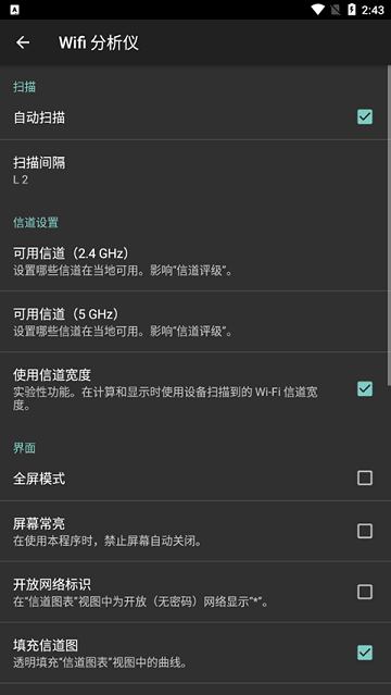 1、首页以动态曲线图形式实时展示周围所有WiFi信号的信道分布与信号强度,色彩分明、刷新流畅,无需专业知识也能快速识别信号拥堵区域。