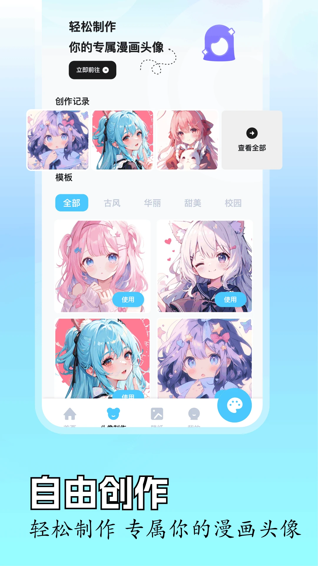 1、点击首页下方的头像制作按钮