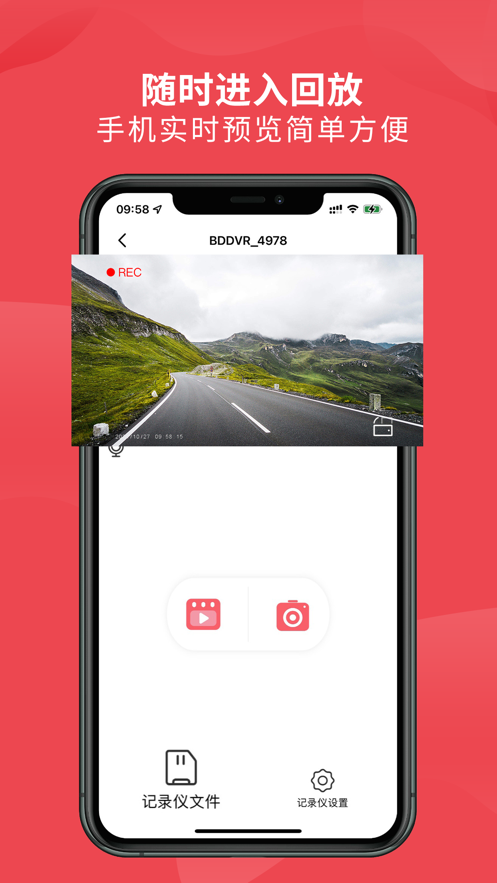 2、路况直播,尽收眼底。 连接成功后,APP即刻同步记录仪镜头画面。采用独家视频流优化技术,确保预览画面稳定、清晰、低延迟,让您随时掌握车辆周边动态。