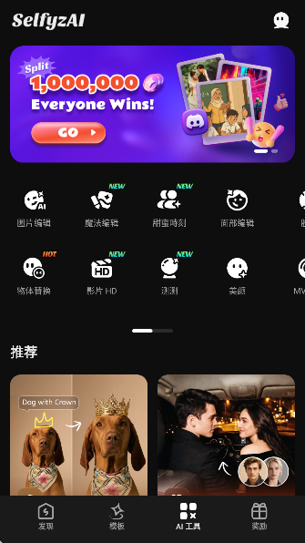 SelfyzAI是一款趣味十足的AI照片编辑神器,只需一键,就能将静态照片智能转化为生动的动态视频!内置多种创意风格模板——如AI亲吻、拥抱、打斗、跳舞 等互动场景,让你轻松生成趣味十足、仿佛“活过来”的个性化照片视频,分享即吸睛。