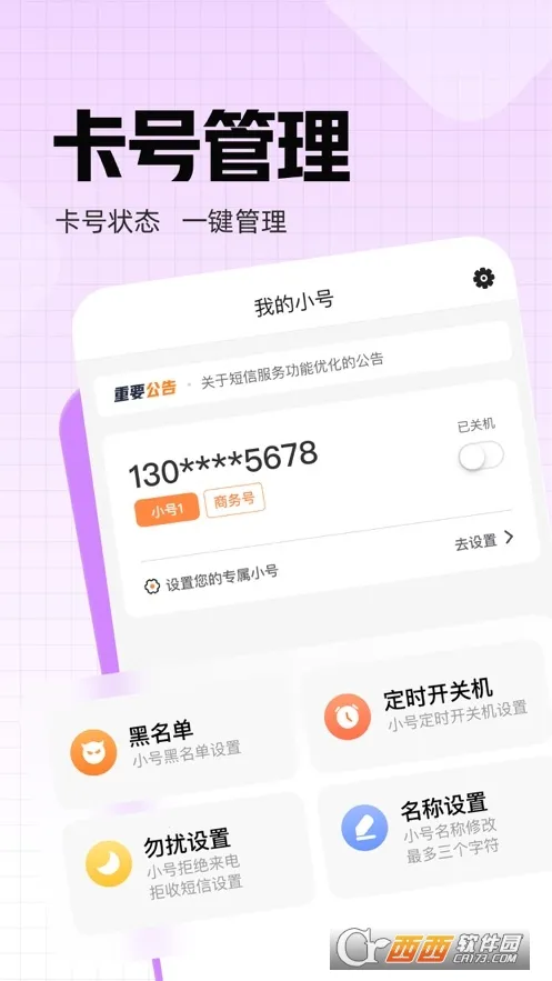 3. 功能丰富:支持自选号码,小号可通话、短信、创建联系人,还有定时开机、修改名称等实用功能,方便用户管理和使用小号。