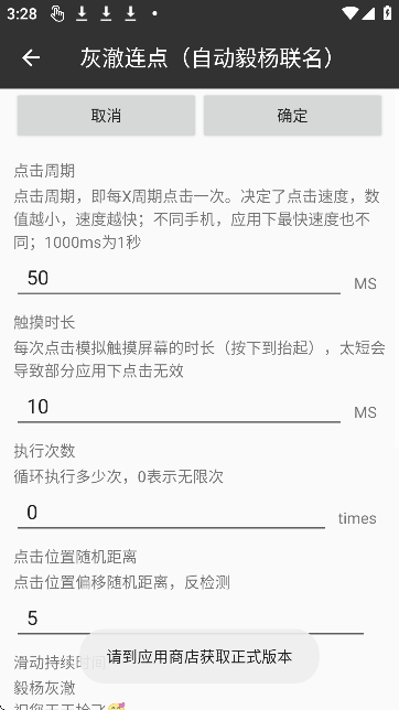 2、自由设置点击位置、频率、按压时长、循环次数及随机偏移,精准匹配不同应用需求。