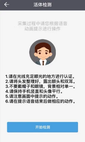 4、点开始检测,按免冠、正面、无镜、顺光、露额的原则进行拍照