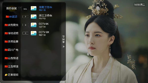 1、点击屏幕任意位置,即可呼出完整的频道菜单。