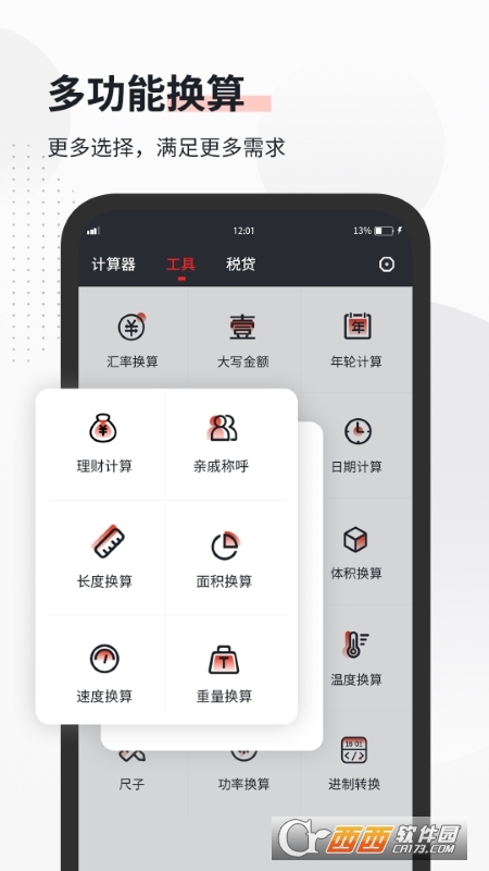 2. 标准科学全覆盖,满足不同需求,涵盖房贷、个税、汇率、单位换算等多种功能。