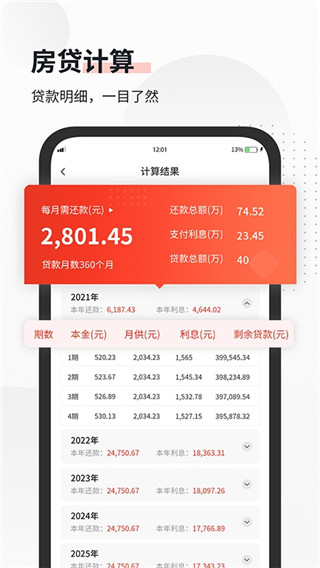 1. 清晰房贷明细查询:能详细了解所有房贷明细,数据清晰。