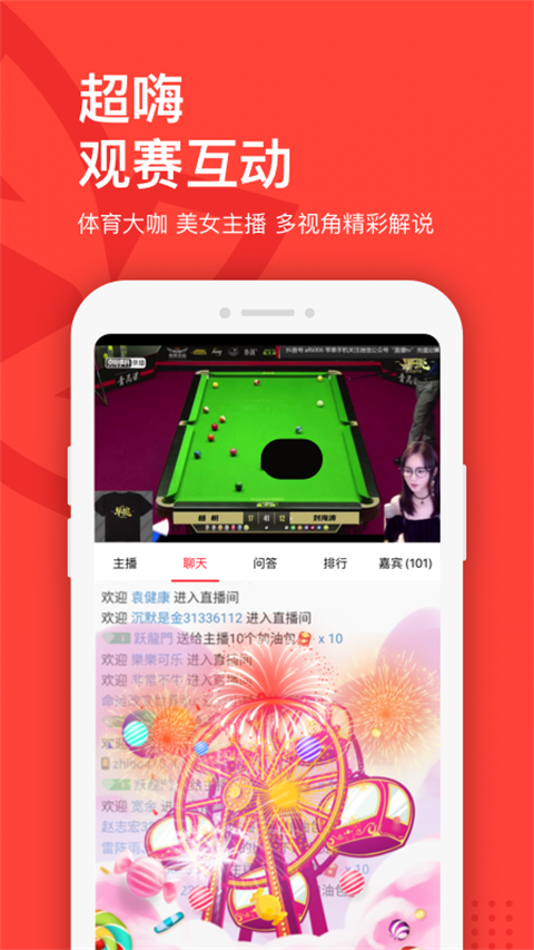 3. 互动抽奖乐趣多:数百位主播实时解说赛事,百万球友陪你聊天吐槽,还有不定期赛事竞猜、抽奖活动,如签名球衣、限量球鞋、球赛门票等,玩法丰富。