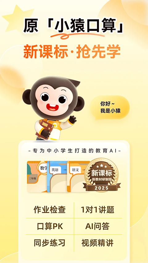 小猿AI最新手机版是猿辅导为中小学生定制的学习AI工具。有作业检查、拍照搜题等功能,接入DeepSeek模型可秒批全科作业,还有口算PK、学习方法等特色,能帮孩子高效学习,减轻家长老师检查负担。