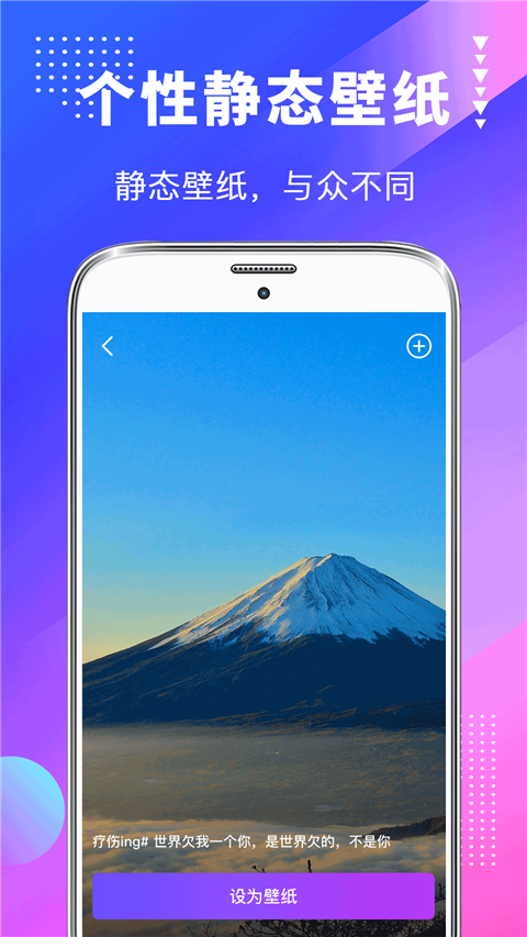 2、美女、卡通、风景、动漫、搞笑……各类高清壁纸应有尽有,一键即可设为桌面或锁屏,轻松焕新手机界面。