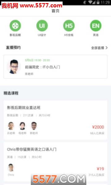 (1)接下来便是关于软件的界面布局,首页展示了用户刚开始的兴趣学科,相关的课程都具明码标价,部分体验课还能免费入门。