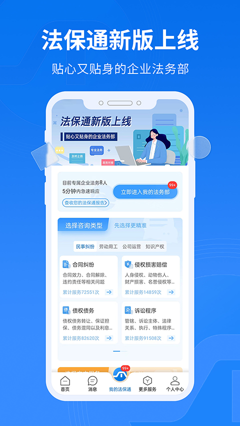 法保网app是企业级一站式法律科技服务平台,以互联网法律接入,结合第三方服务。借助前沿科技解决中小微企业法务难题,提供在线咨询、合同定制等多项服务,还有多种特色功能与应用亮点,不断更新优化。