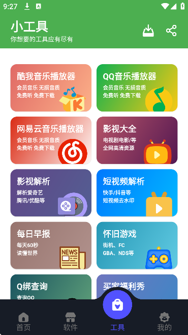 1、首先在工具页面点击解析功能。
