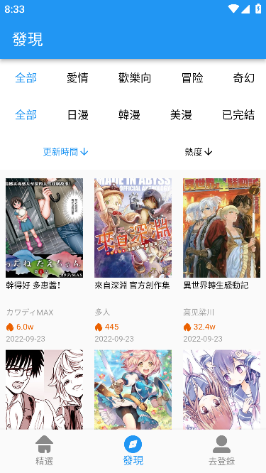 1、分类齐全,题材丰富:涵盖热血、冒险、魔幻、搞笑、萌系、爱情、科幻、武侠、机甲等多种类型,满足各类读者的阅读偏好;
