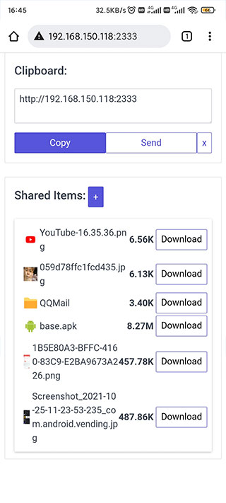 3、选择文件后将分享网址在另一台设备访问即可。