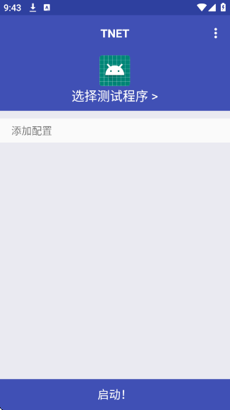 1、下载并安装TNET弱网 应用,打开后点击「选择测试程序」,从列表中直接选取你要调试的应用。