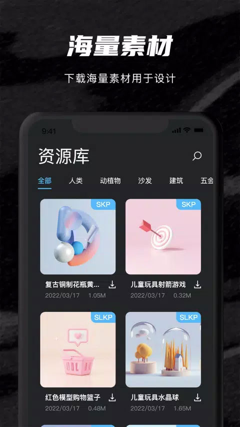 应用全面兼容SKP、SU、DWG、CAD、STEP(STP)、3D模型等50余种主流二维与三维图纸格式,支持快速预览、精准测量、批注标注及云端分享,实现高效技术沟通。内置海量高质量SU模型库,涵盖家具、建筑构件、景观元素等,一键下载即用,大幅提升建模效率。